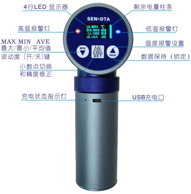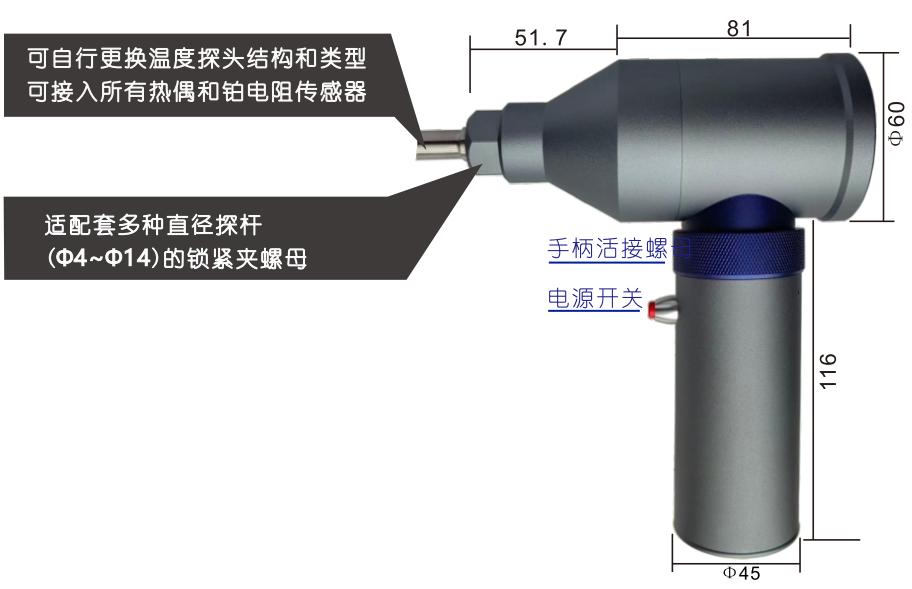 可拆卸的手柄內(nèi)置5000mAh 鋰電池,通用 USB充電口,外接電源持續(xù)測(cè)量。